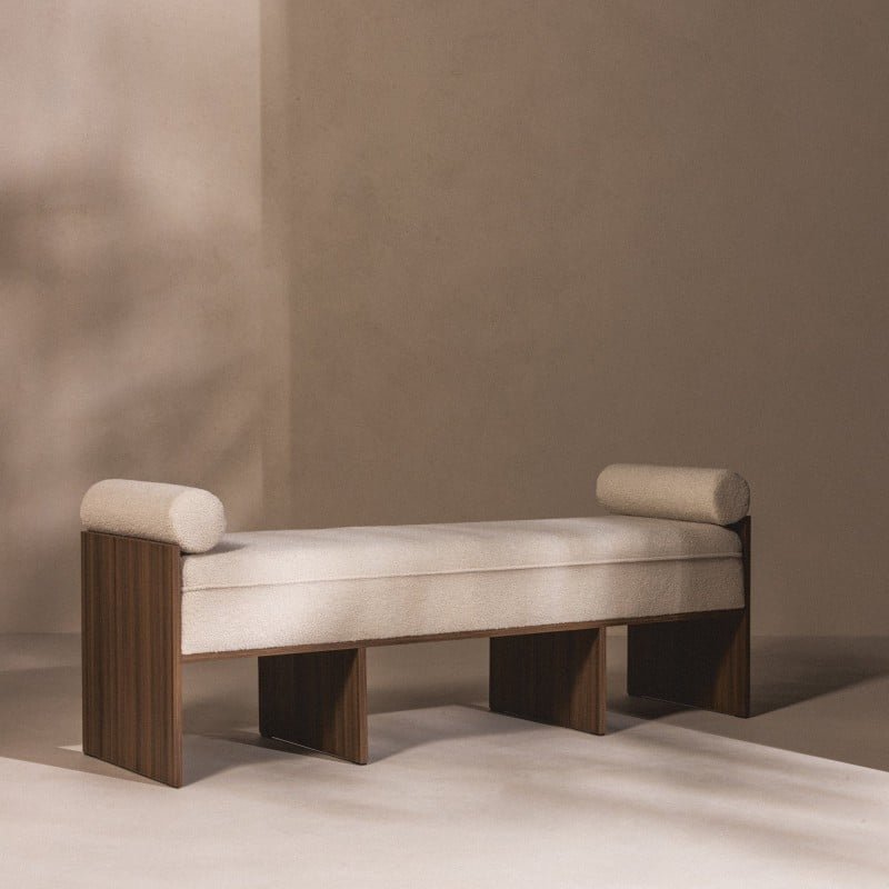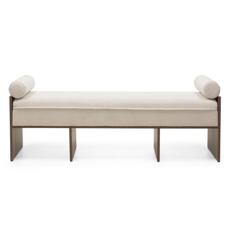 Bancă tapițată Loppo bej deschis, bouclé, nuc Wisconsin
