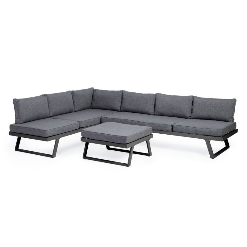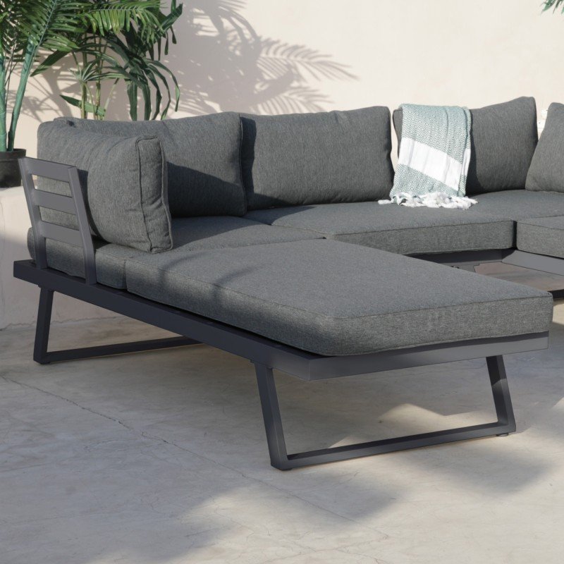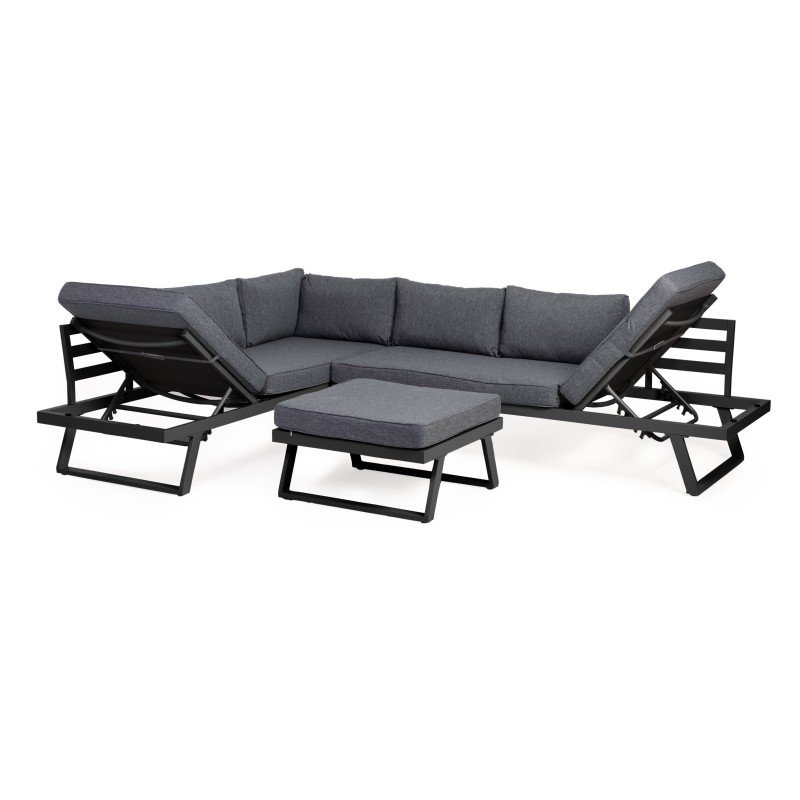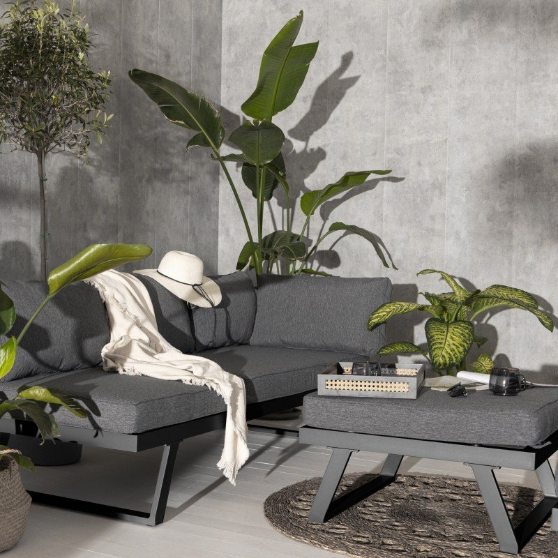 Canapea de colț de grădină Lafoole Lunge cu masă, Spun-Poly, gri închis