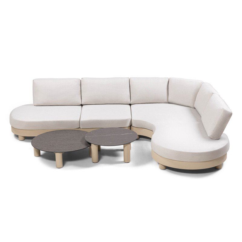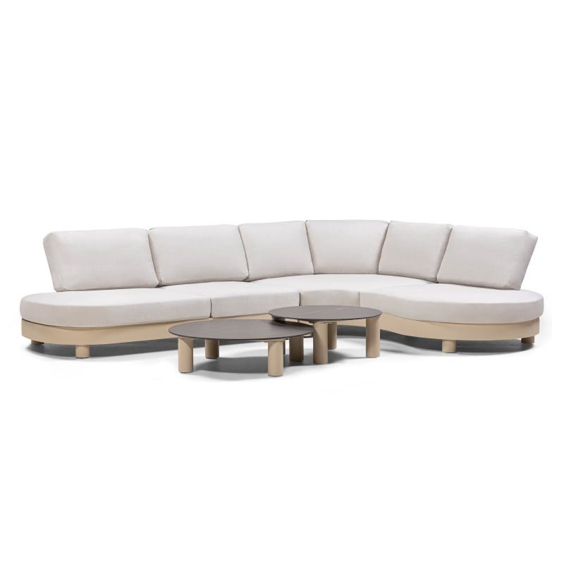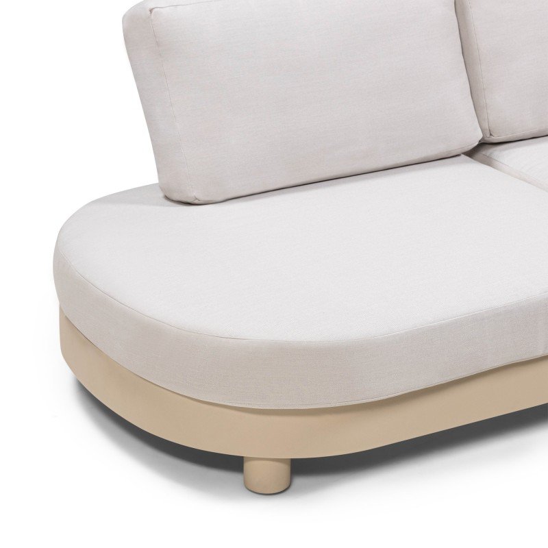 Canapea de colț de grădină Santa Ana cu 2 măsuțe, aluminiu, bej, decor din marmură, forme rotunjite