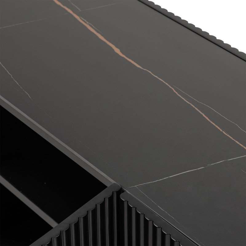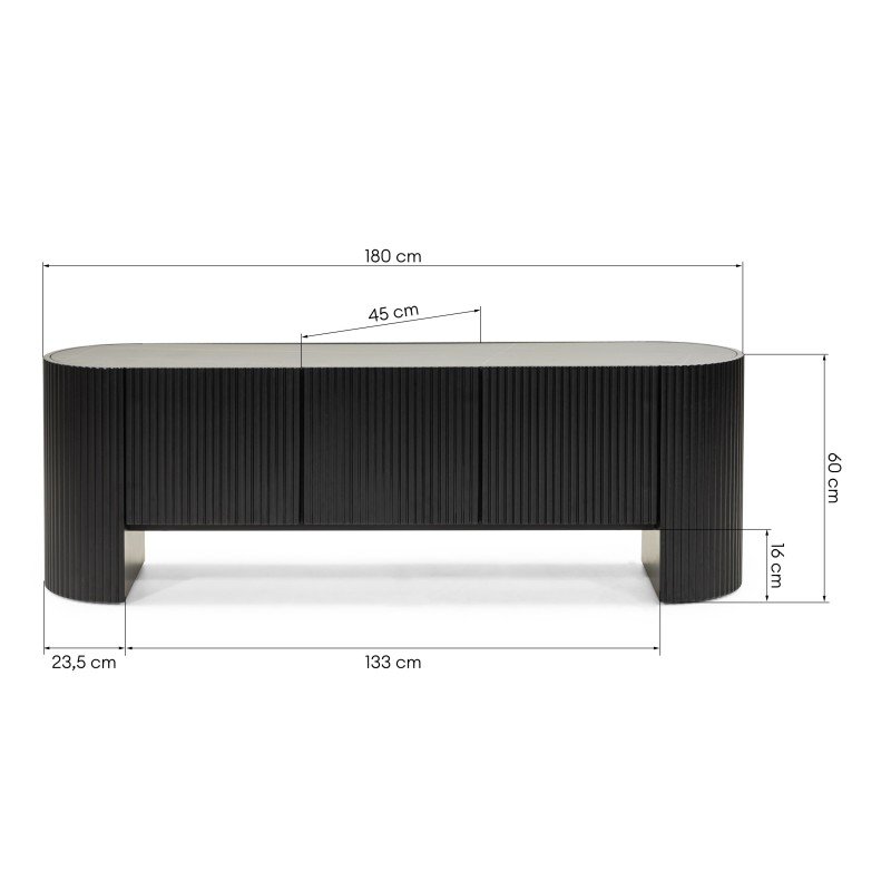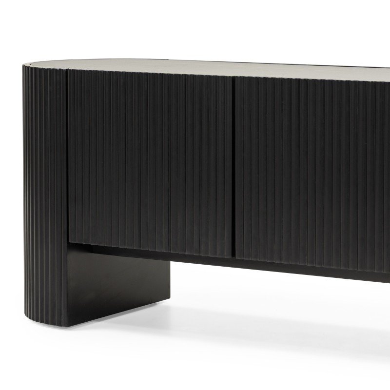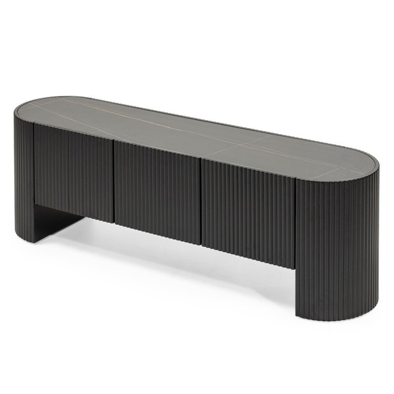 Dulap TV oval Sansita, negru, canelat, sinterizat