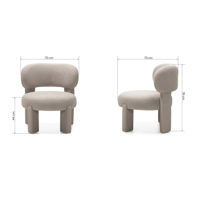 Fotoliu tapițat Falone, gri-bej, boucle, rotunjit