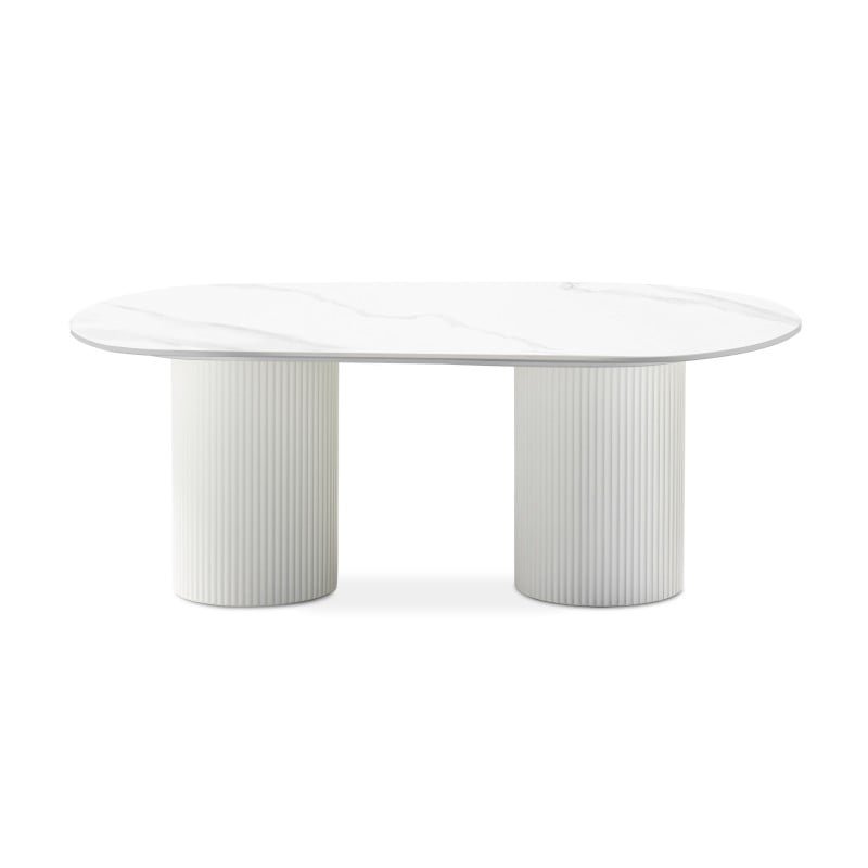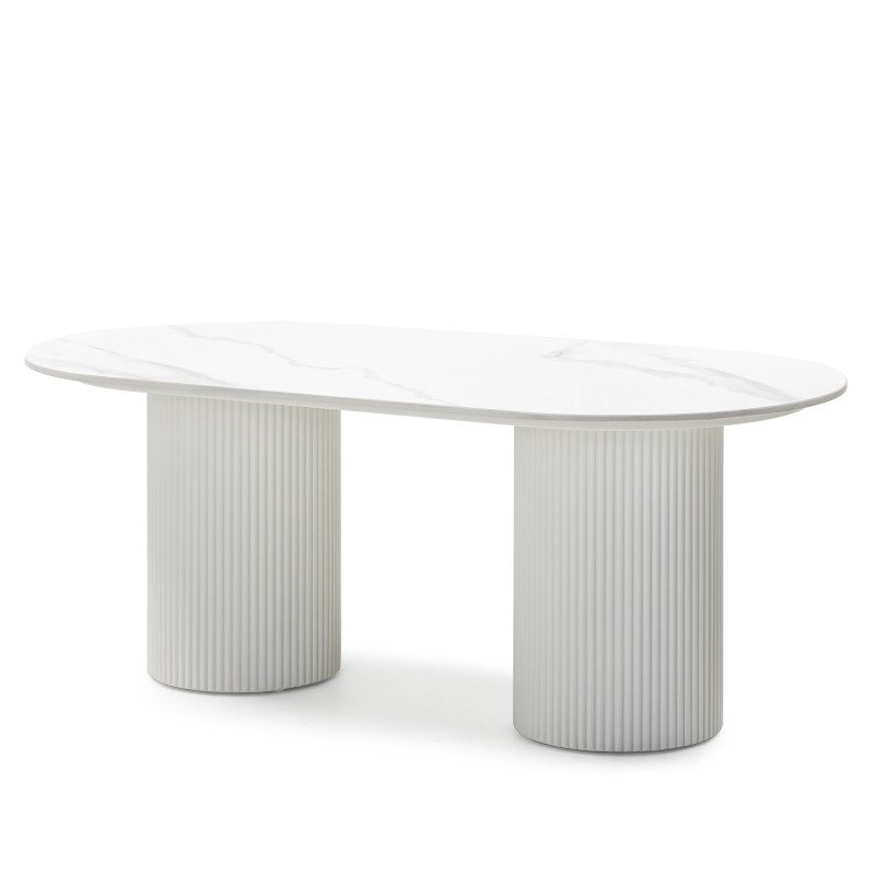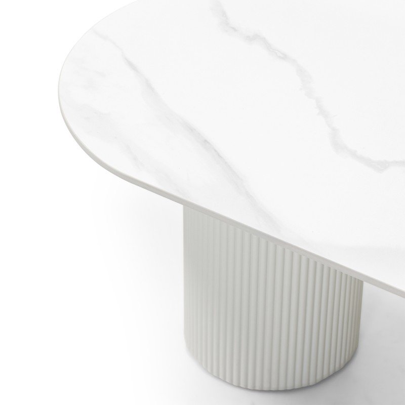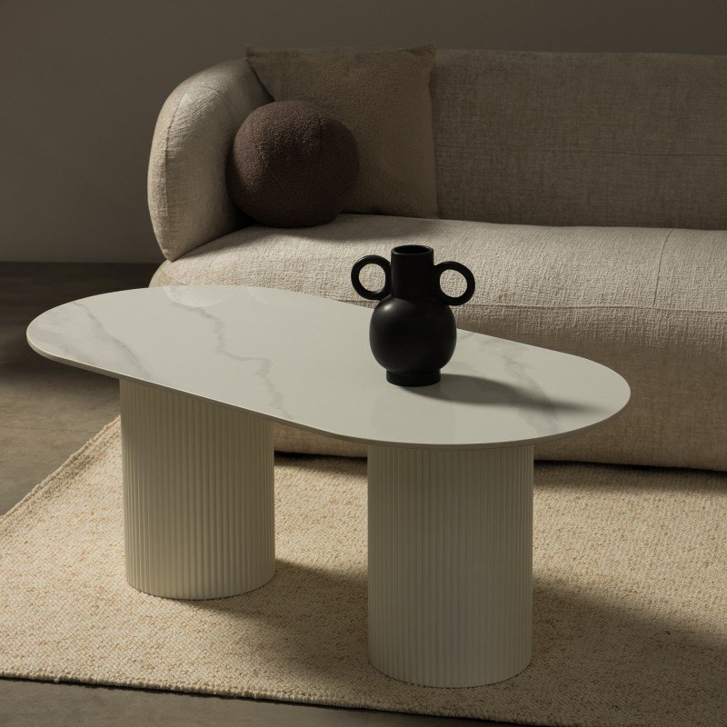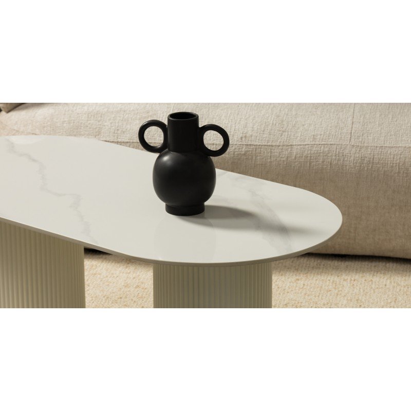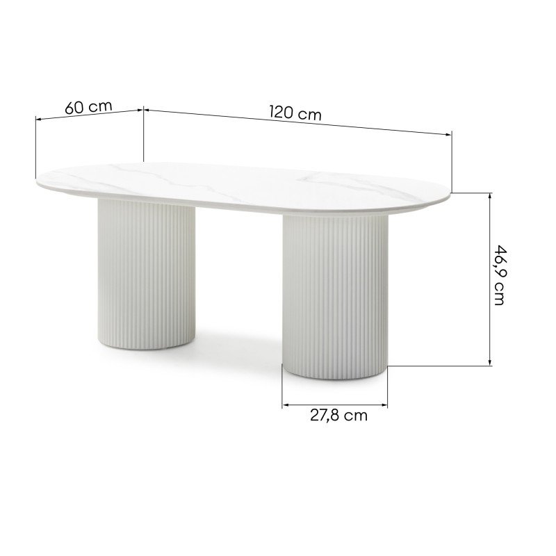 Masă de cafea Apulia 120 cm, ovală, lamele, efect de marmură albă, sinterizată