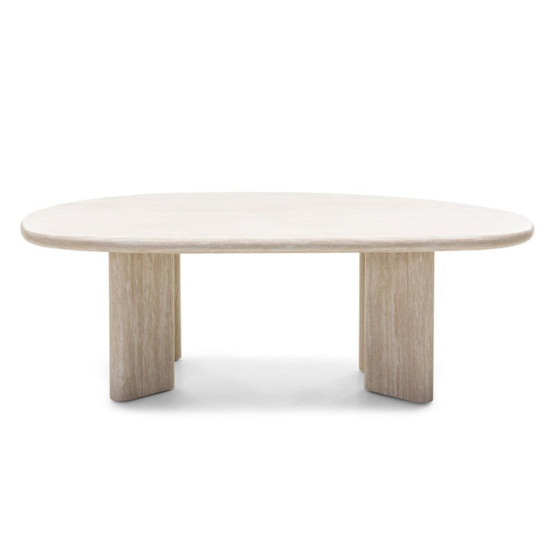 Măsuța de cafea Cameron captivează prin formele sale rotunjite și neregulate, care îi conferă un aspect unic și modern. Fabricată din MDF solid și finisată cu un furnir elegant cu efect de travertin, este un plus elegant pentru orice interior. O alegere ideală pentru cei care apreciază funcționalitatea și designul unic.