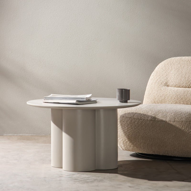 Masă de cafea Lazaro 80 cm, rotundă, gri-bej