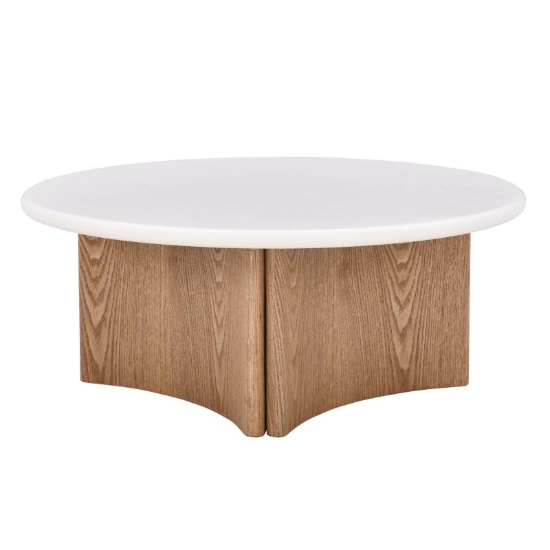 Masă de cafea Marlo 80 cm, Alb crem/Stejar, Microciment