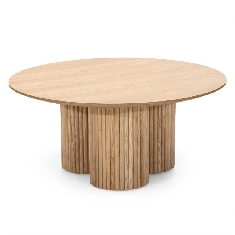 Masă de cafea rotundă Vesby 100 cm, stejar natural, frasin, lamele