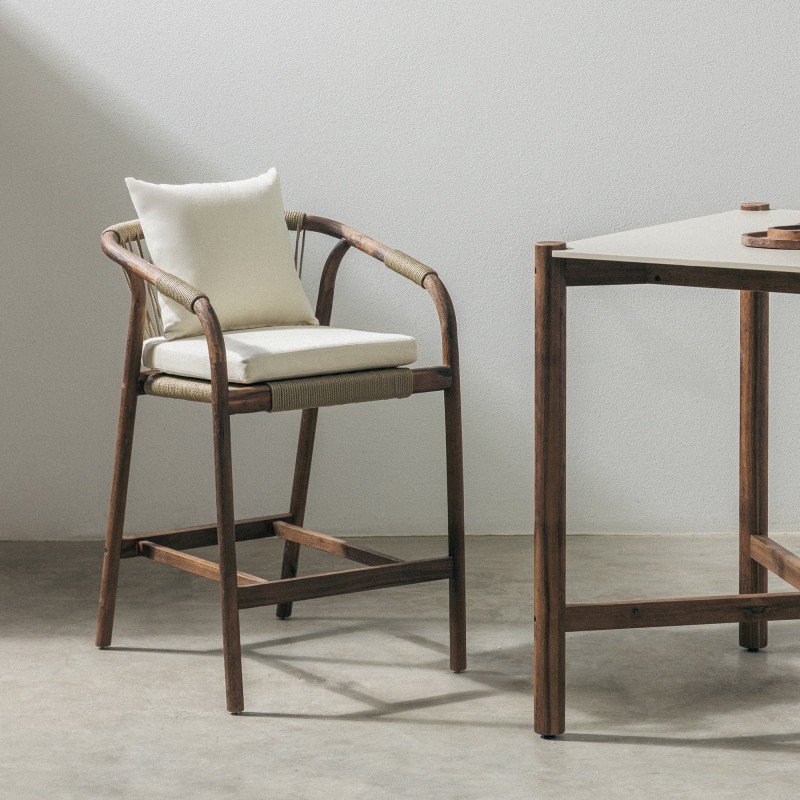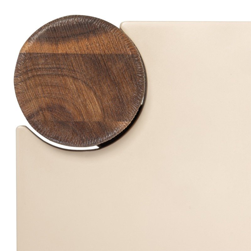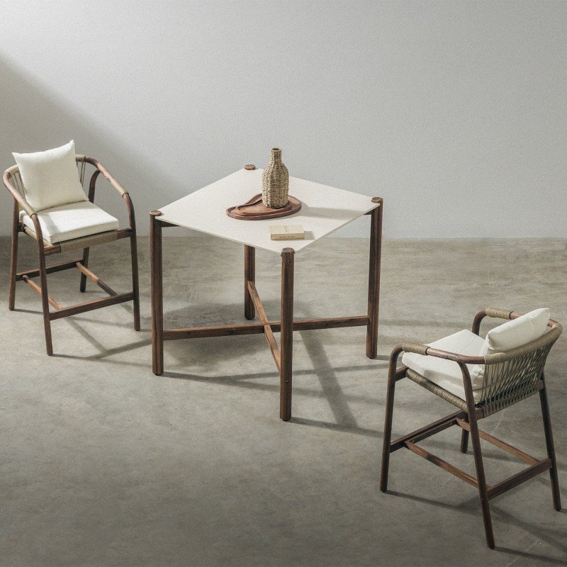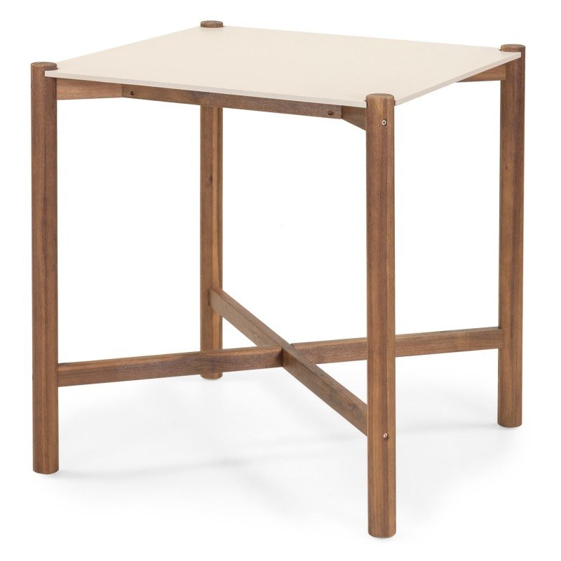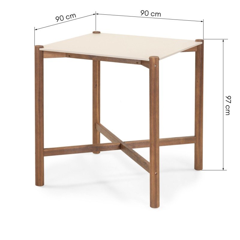 Masă de grădină Rovigo 90 cm cu blat din piatră, lemn de salcâm închis/bej deschis