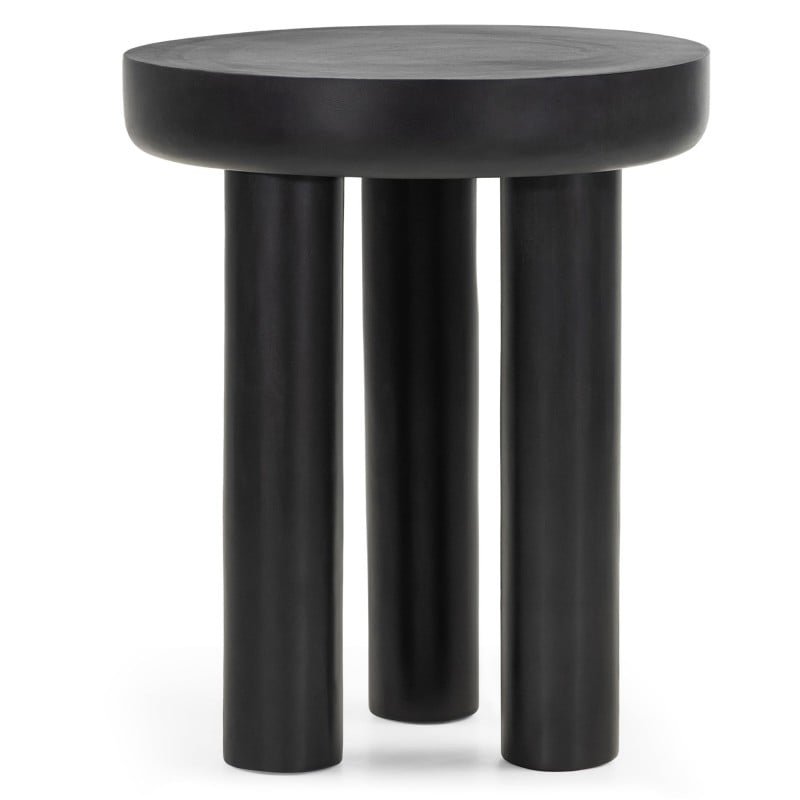 Masă laterală Limali 50 cm, rotundă, neagră, lemn de mango, forme rotunjite