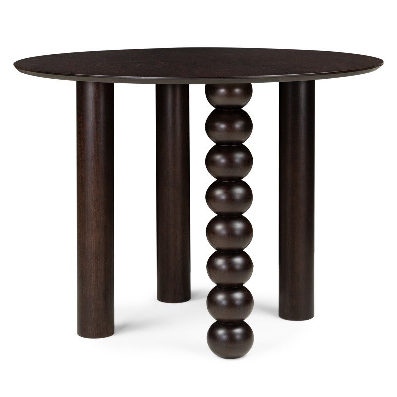 Masă rotundă Bolla 100 cm, furnir de stejar, nuc, picior sferic decorativ