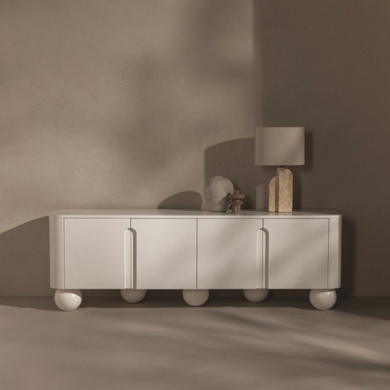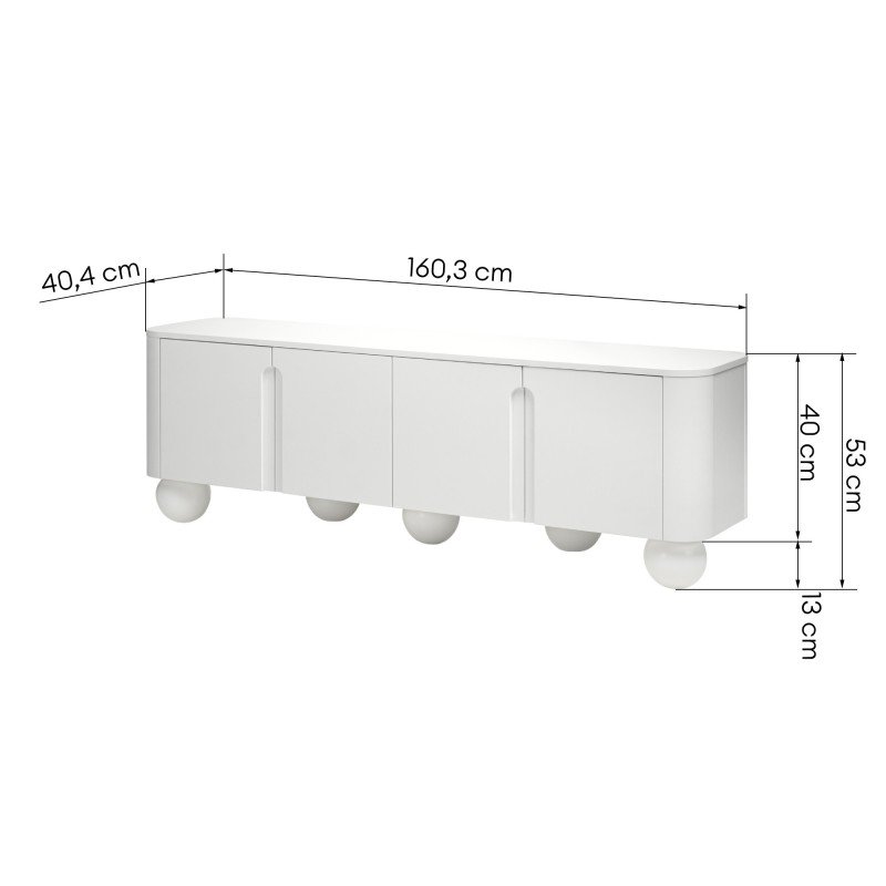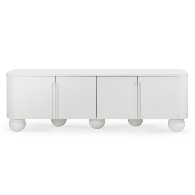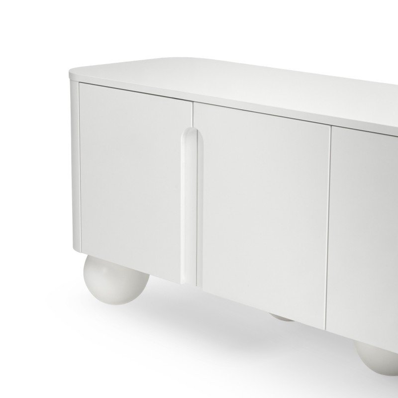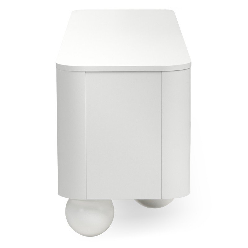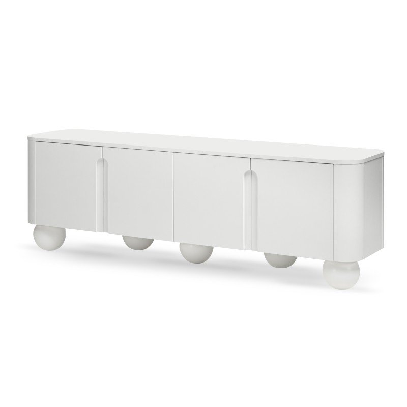 Mobilier TV Circula, alb, rotunjit, picioare sferice