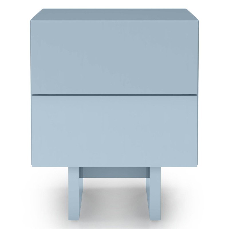 Noptiera Glim în culoarea albastru fumuriu este o piesă de mobilier modernă, concepută pentru un dormitor elegant și funcțional. Finisajul său elegant și lucios îi conferă un caracter unic, în timp ce designul minimalist, fără mânere, accentuează designul contemporan.