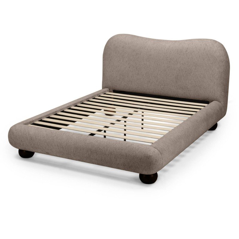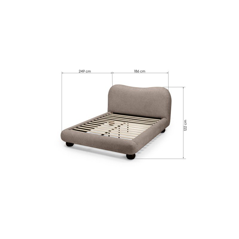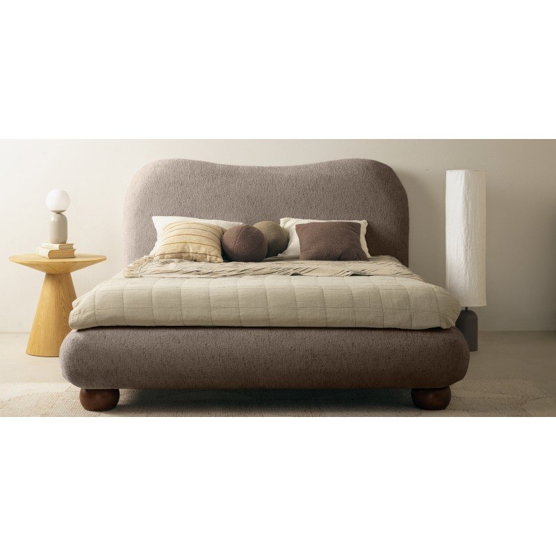Pat tapițat Bowee 160×200 cm, cu cadru, maro, picioare sferice