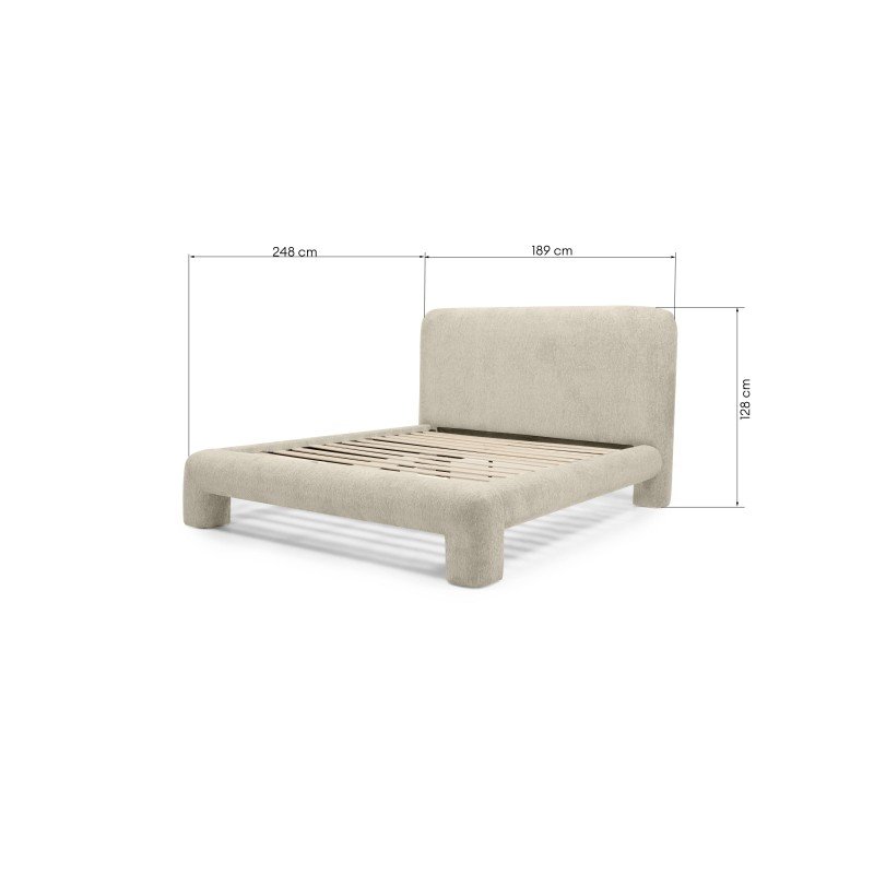 Pat tapițat Rolly 160×200 cm, cu cadru, rotunjit, gri deschis
