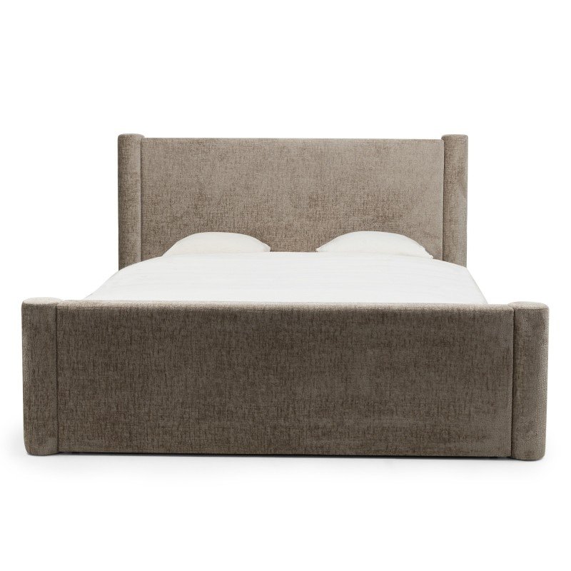 Patul Zeni din țesătură chenille bej este o combinație armonioasă între stilul modern și funcționalitate. Tăblia înaltă oferă confort în timpul relaxării de zi cu zi, în timp ce compartimentul pentru lenjerie de pat permite o organizare inteligentă a spațiului. Culoarea subtilă și forma elegantă îl fac un plus perfect pentru orice design de dormitor.