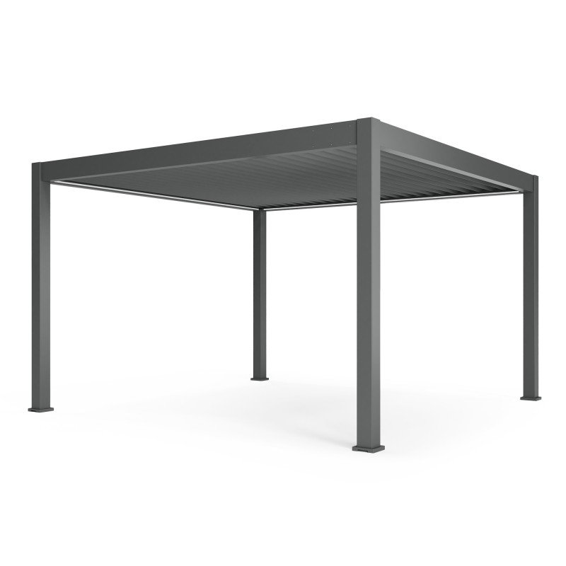 Pergolă de grădină Lumera 4×4 m din aluminiu, bioclimatică, iluminare LED, electrică, antracit
