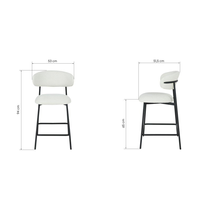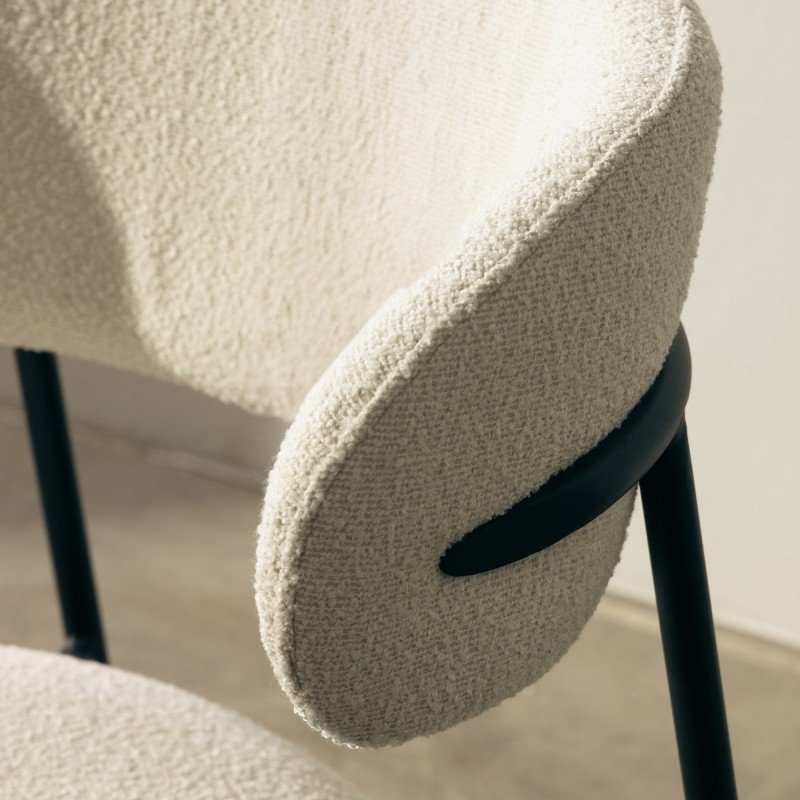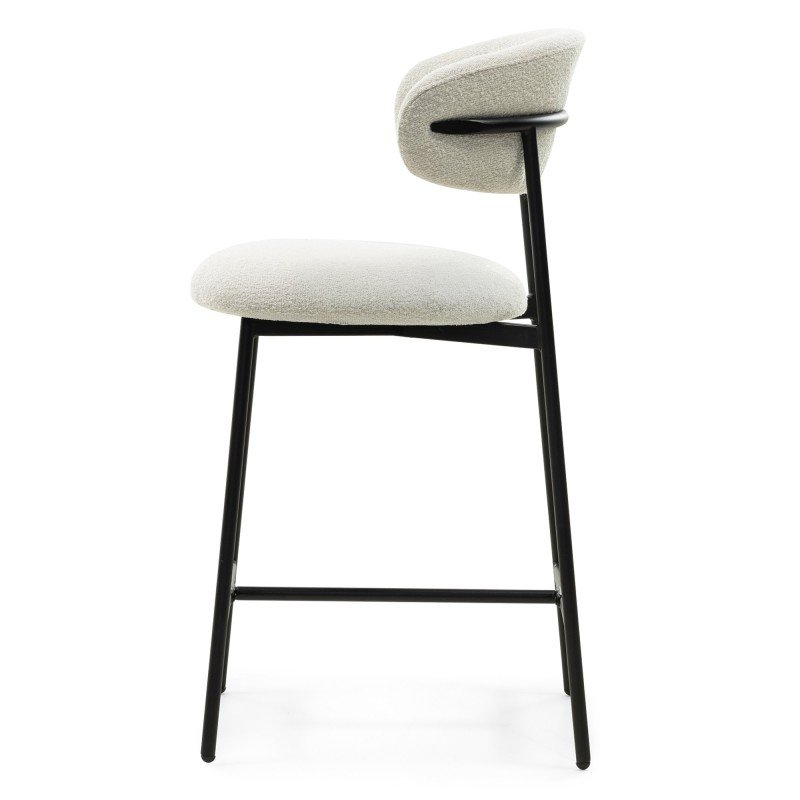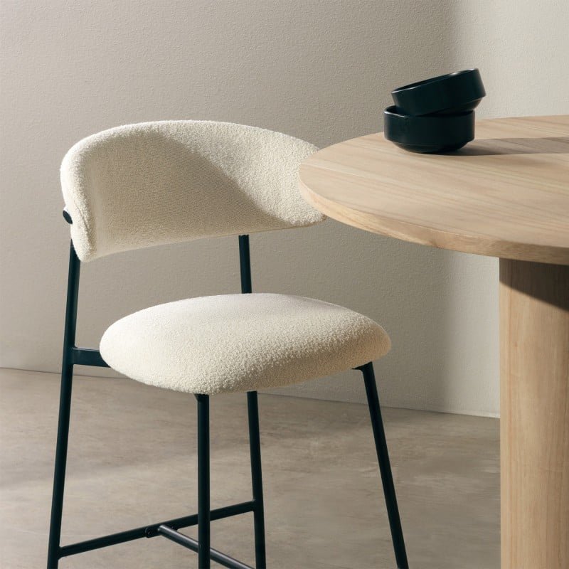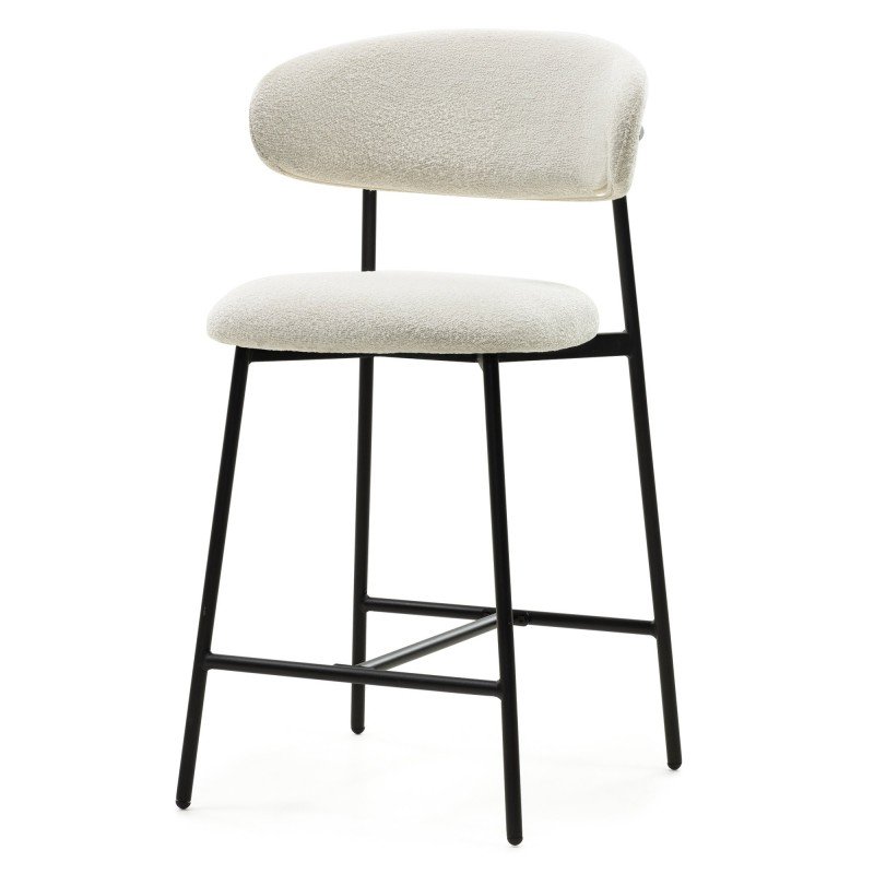 Scaun de bar Fresno, picioare crem/negre, bouclé