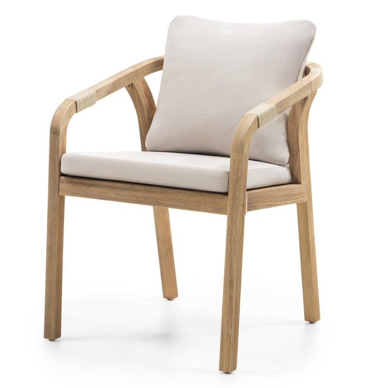 Scaun de grădină Castello cu țesătură, lemn de salcâm FSC, aspect de tec, bej