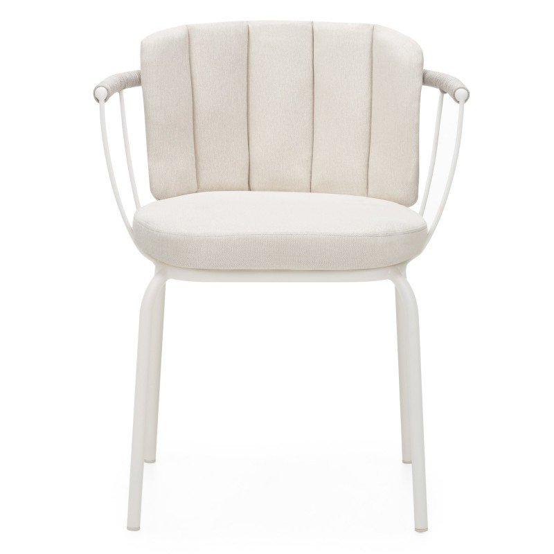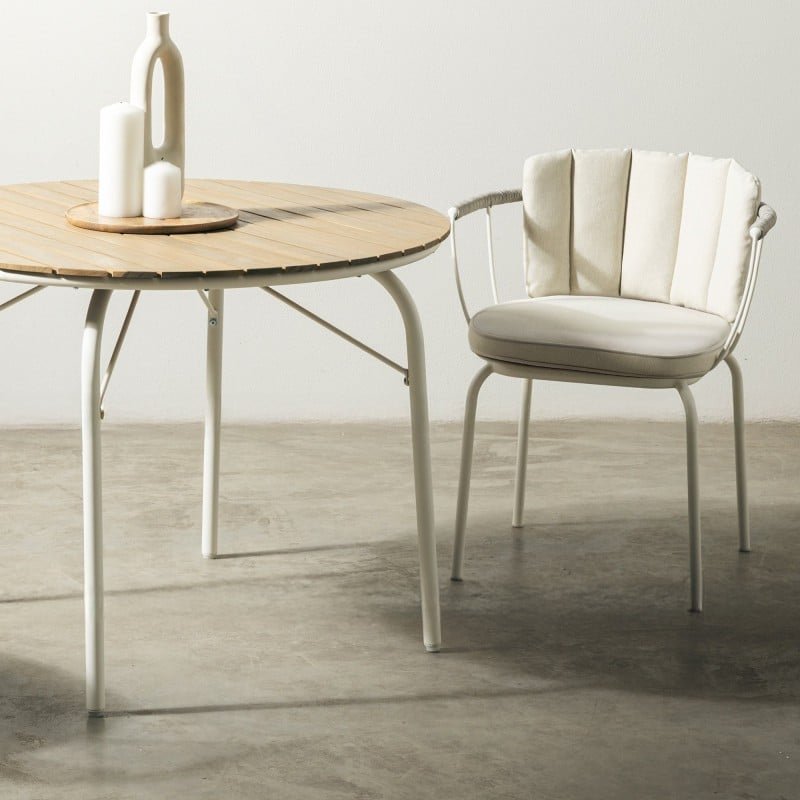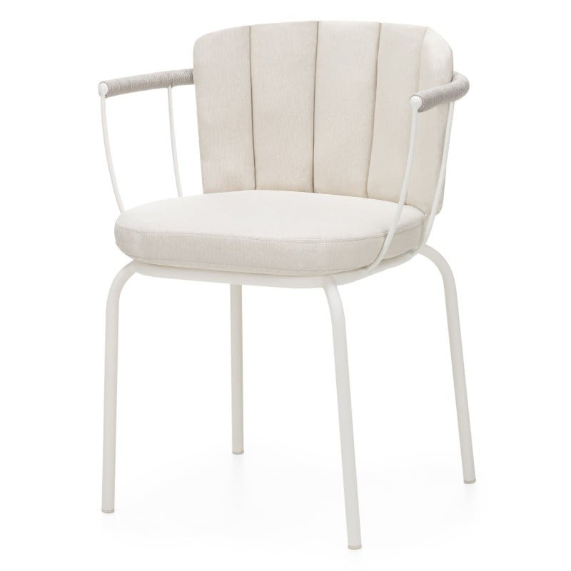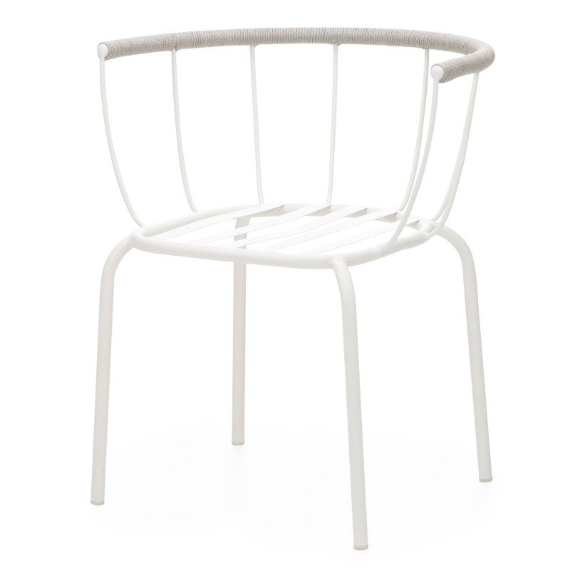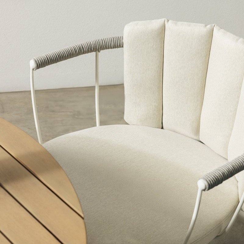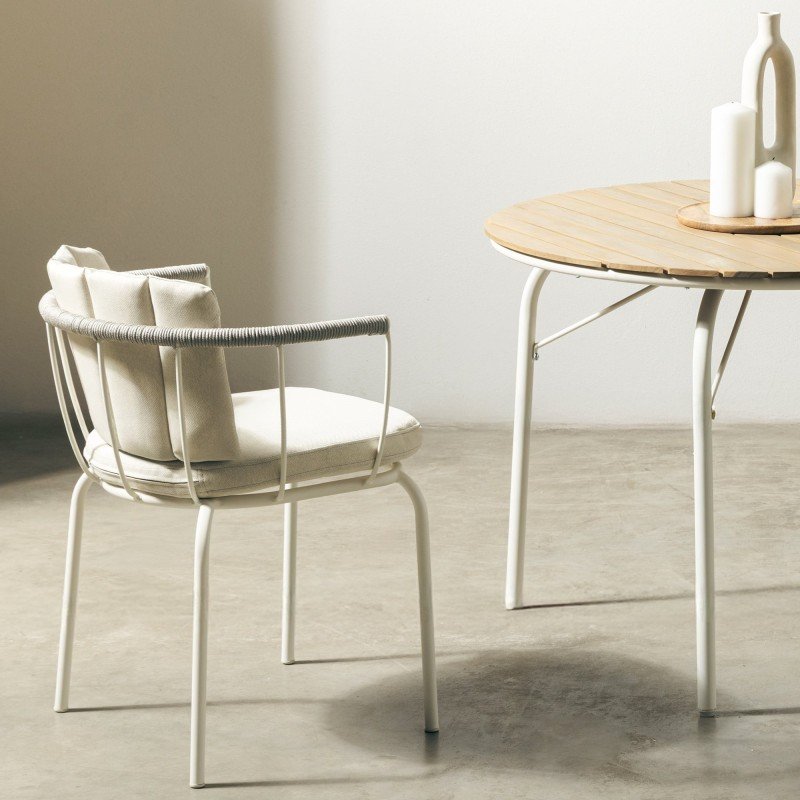Scaun de grădină Fioli cu împletitură de frânghie, alb/bej deschis