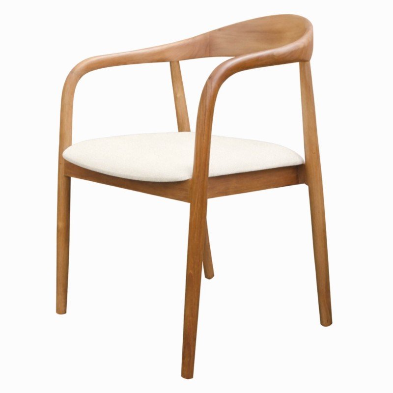 Ludvika 2.0 impresionează prin designul său rotunjit, realizat din lemn de tec durabil, care nu numai că arată frumos, dar garantează și o durabilitate de lungă durată. Șezutul este tapițat cu o țesătură crem „anti-pete” – aceasta înseamnă că scurgerile nu se absoarb imediat, ceea ce le face mai ușor de curățat și previne petele.