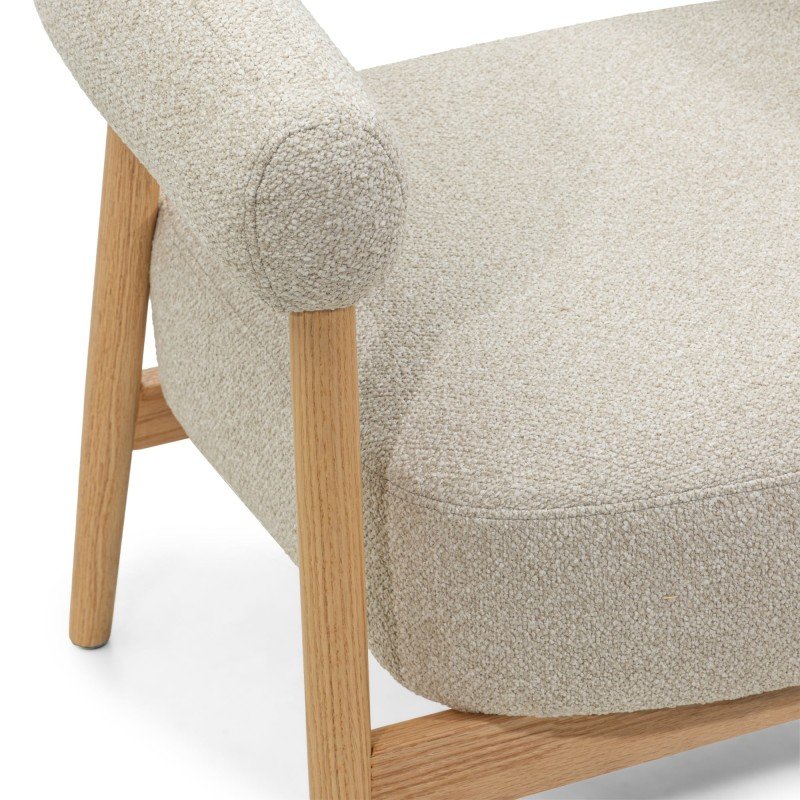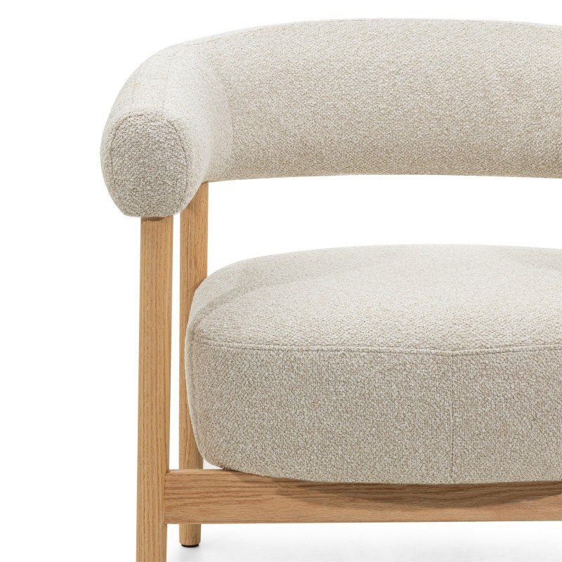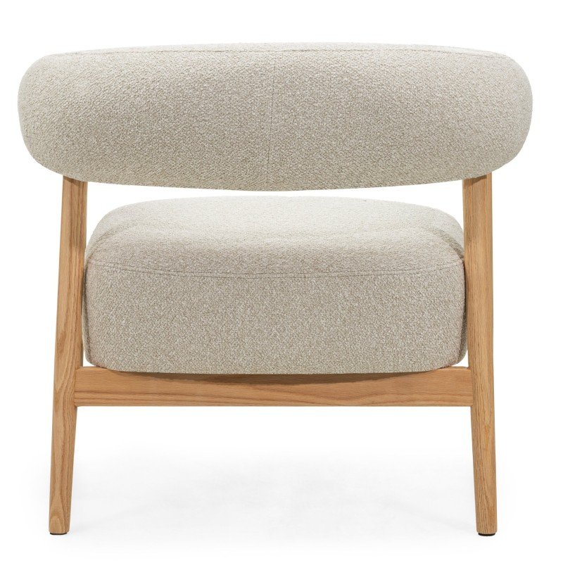 Scaun/fotoliu tapițat Montepulciano, bej deschis/lemn de stejar, rotunjit
