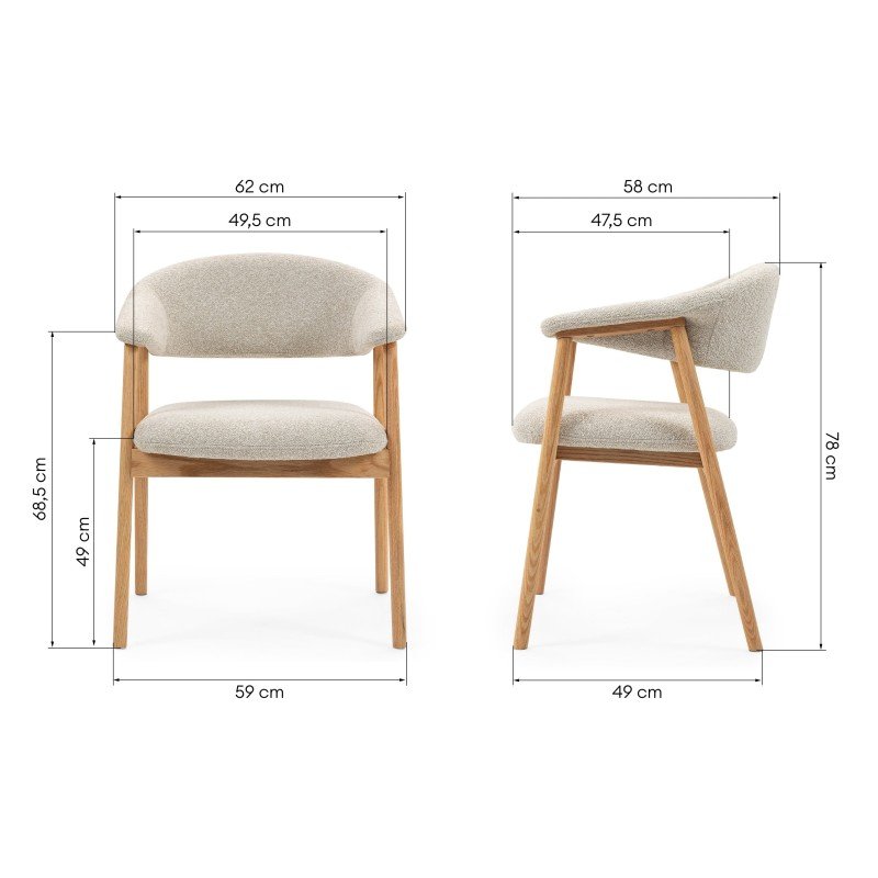 Scaun tapițat Capri, bej deschis/lemn de stejar